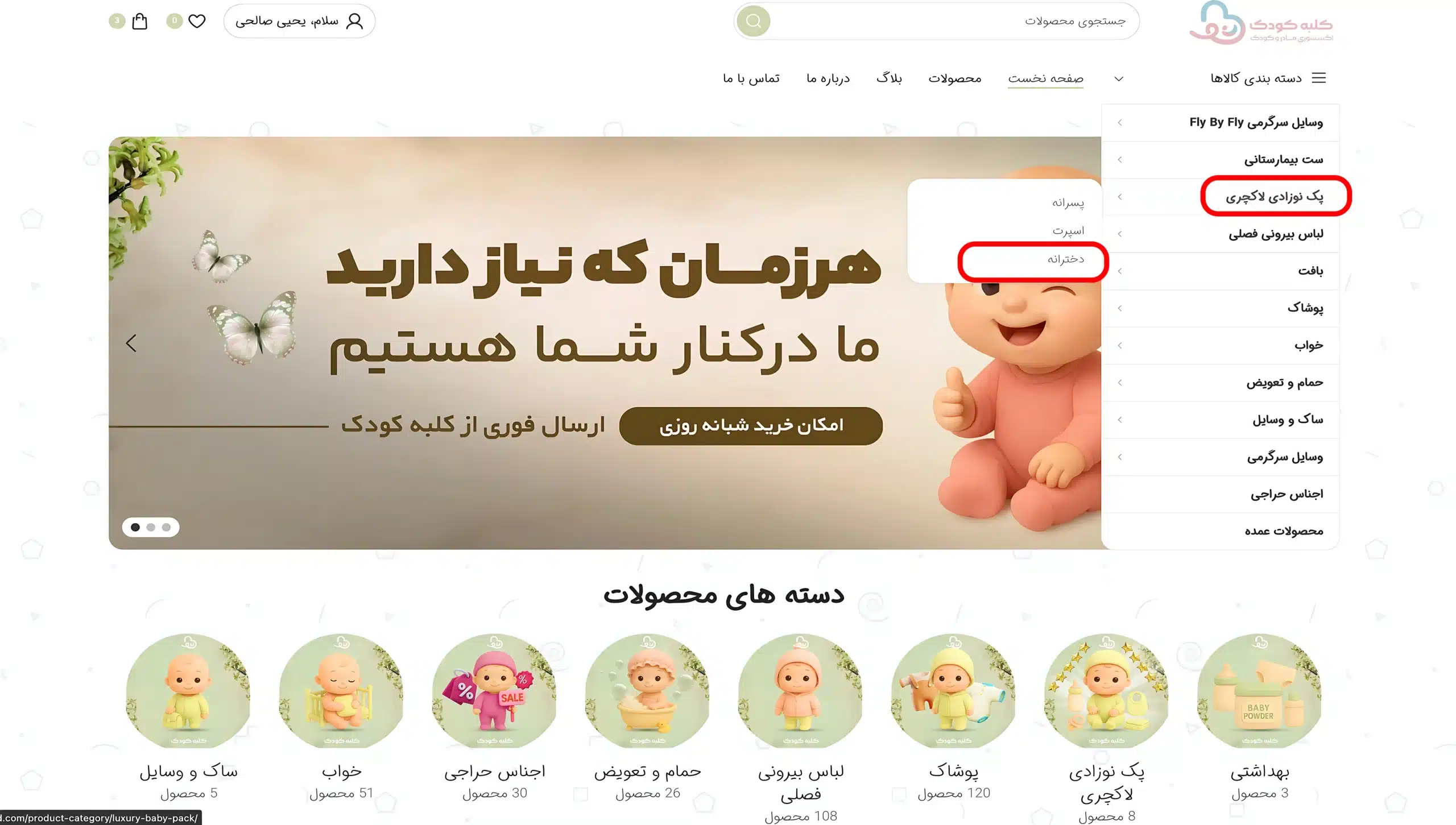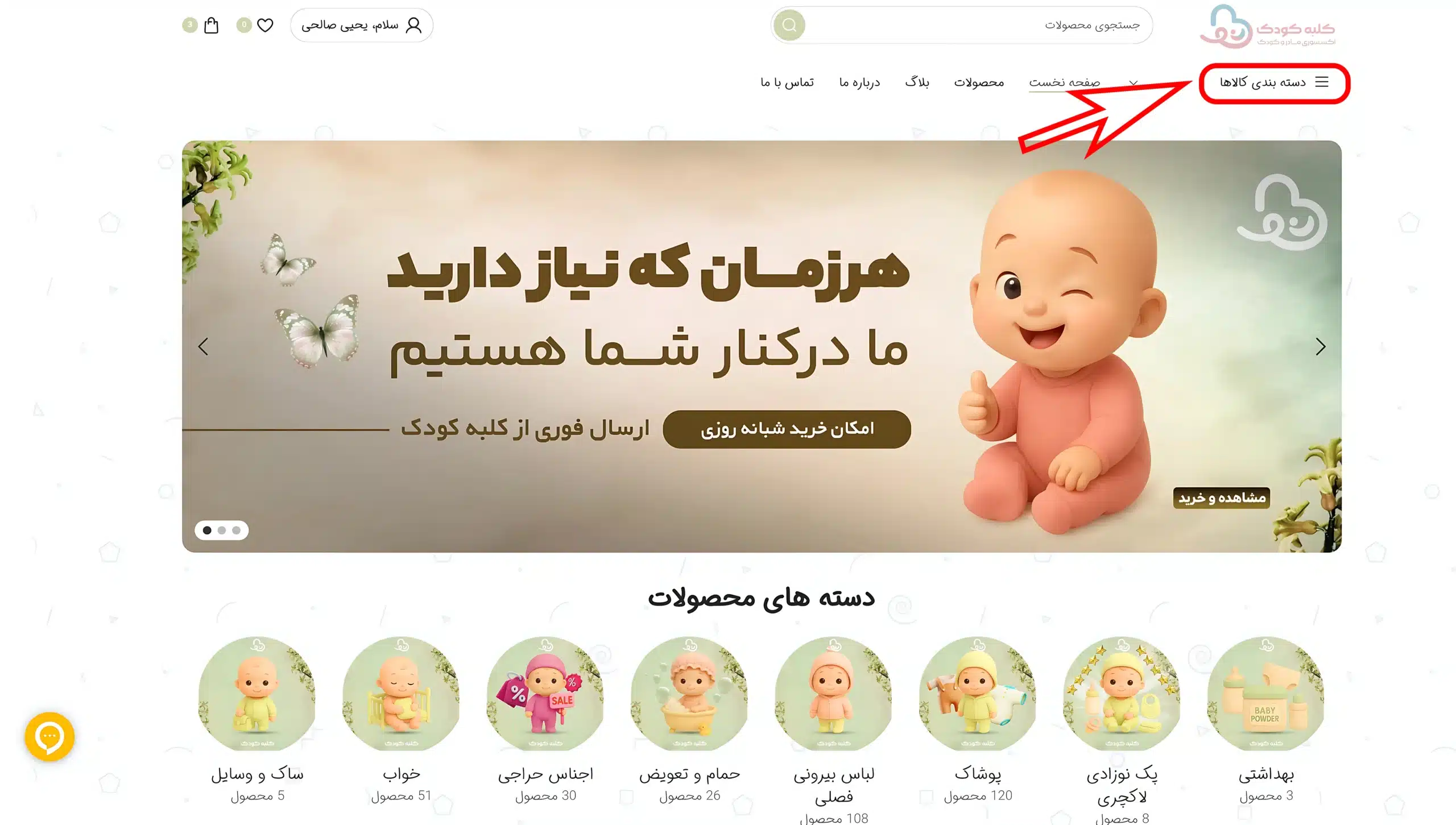 ۱. جهت سفارش محصول مورد نظر خود، روی گزینه دستهبندی کالاها کلیک کنید.