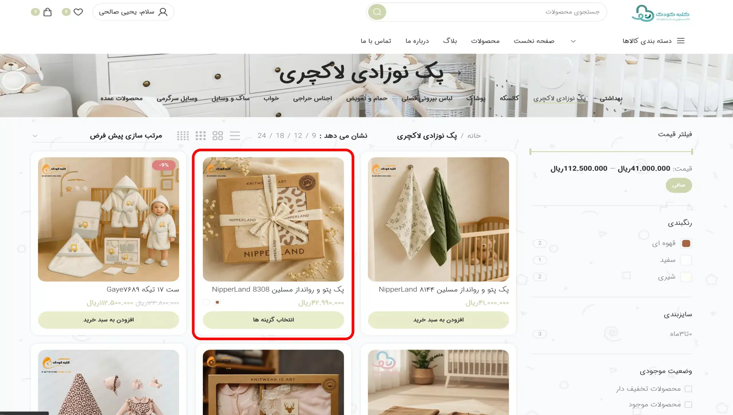 ۳. محصول مورد نظر خود را انتخاب نموده و وارد صفحه محصول شوید.