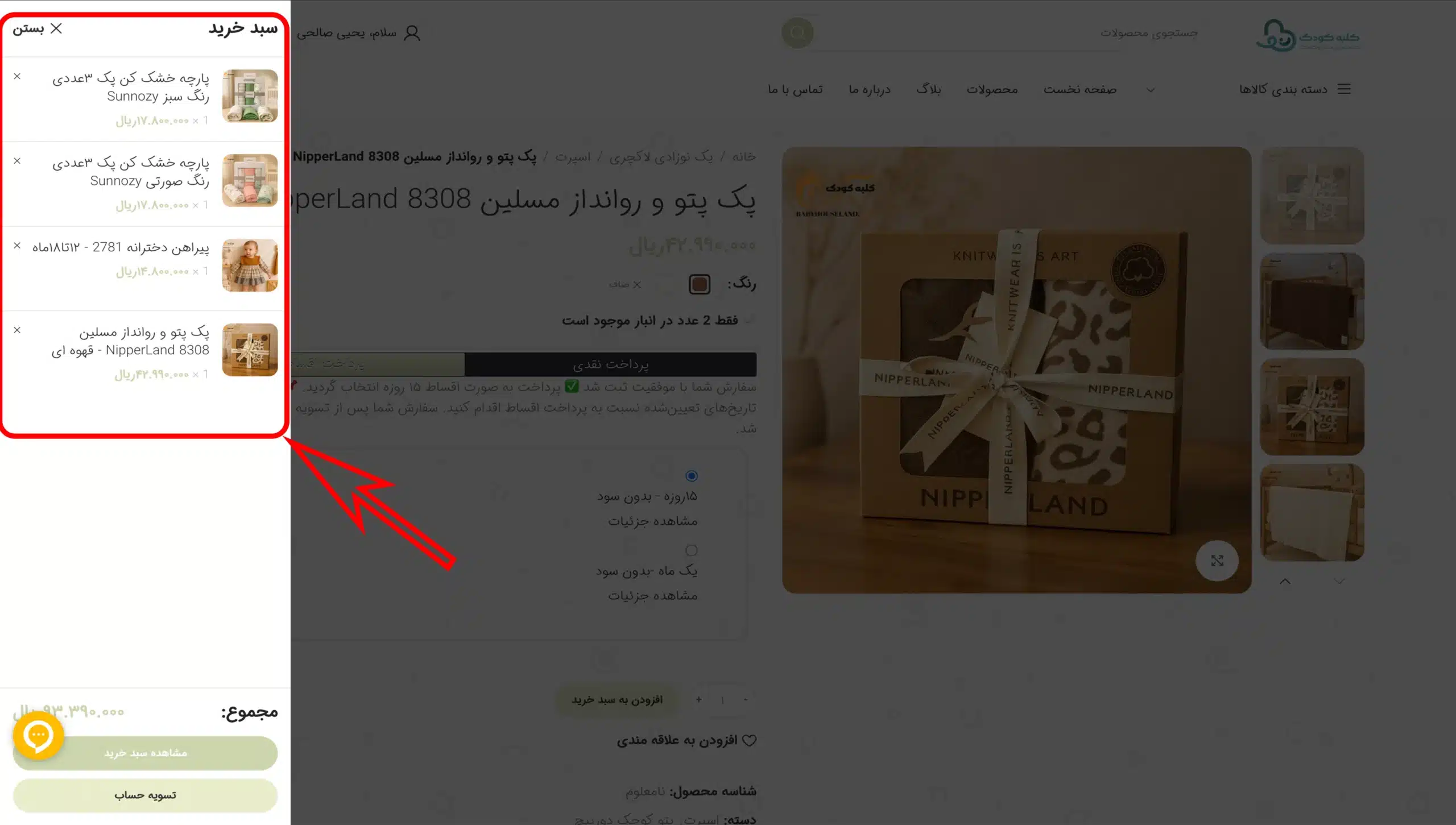 ۵. با انتخاب گزینه افزودن به سبد خرید، محصول را به سبد فروشگاهی خود اضافه نمایید.