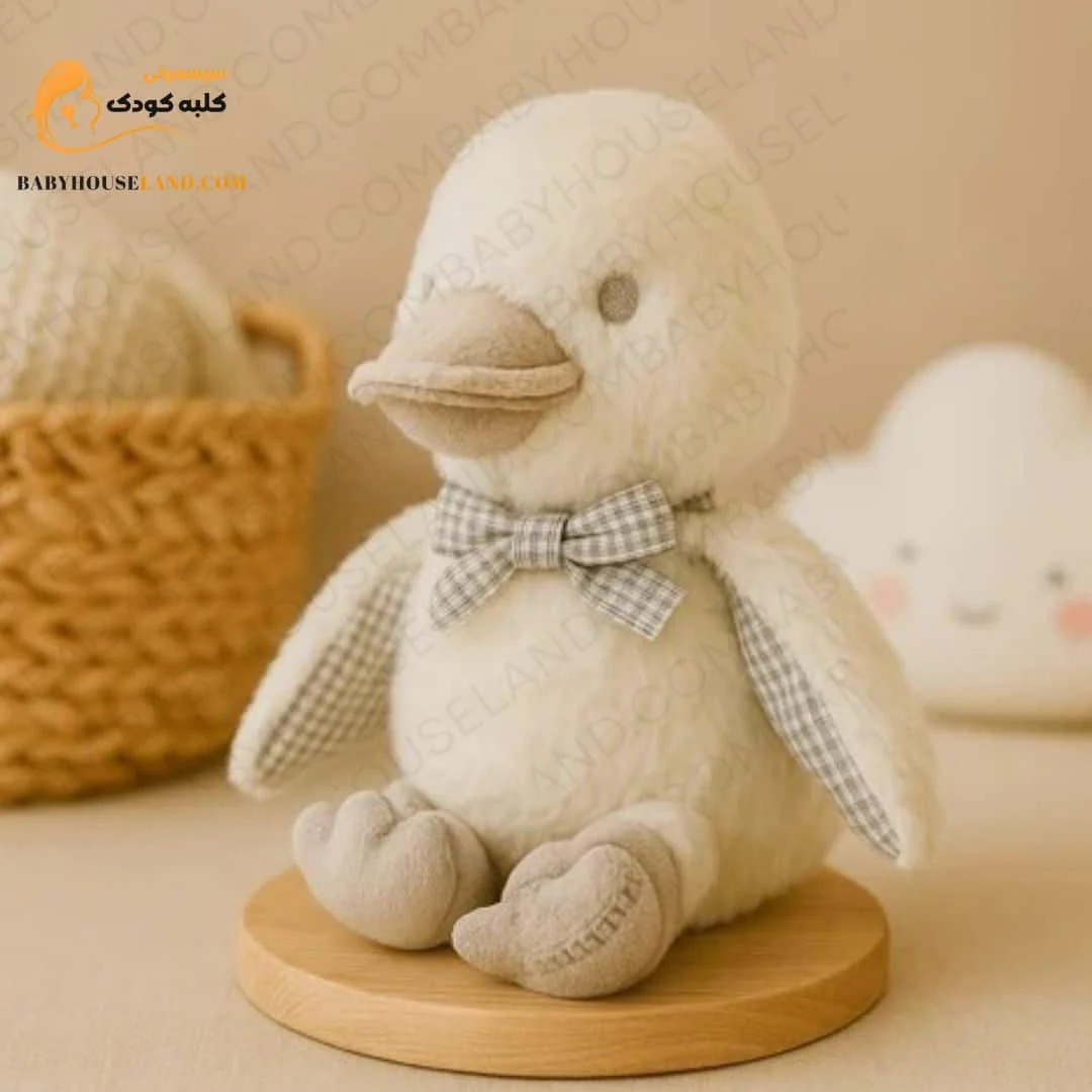 این اردک بامزه با ظاهر نشسته و پارچهای فوقالعاده لطیف، هم یه همبازی مهربونه، هم یه دکور دوستداشتنی برای اتاق کودک. اندازه مناسبش باعث میشه تو بغل کوچولوها جا بشه و حس امنیت بده.