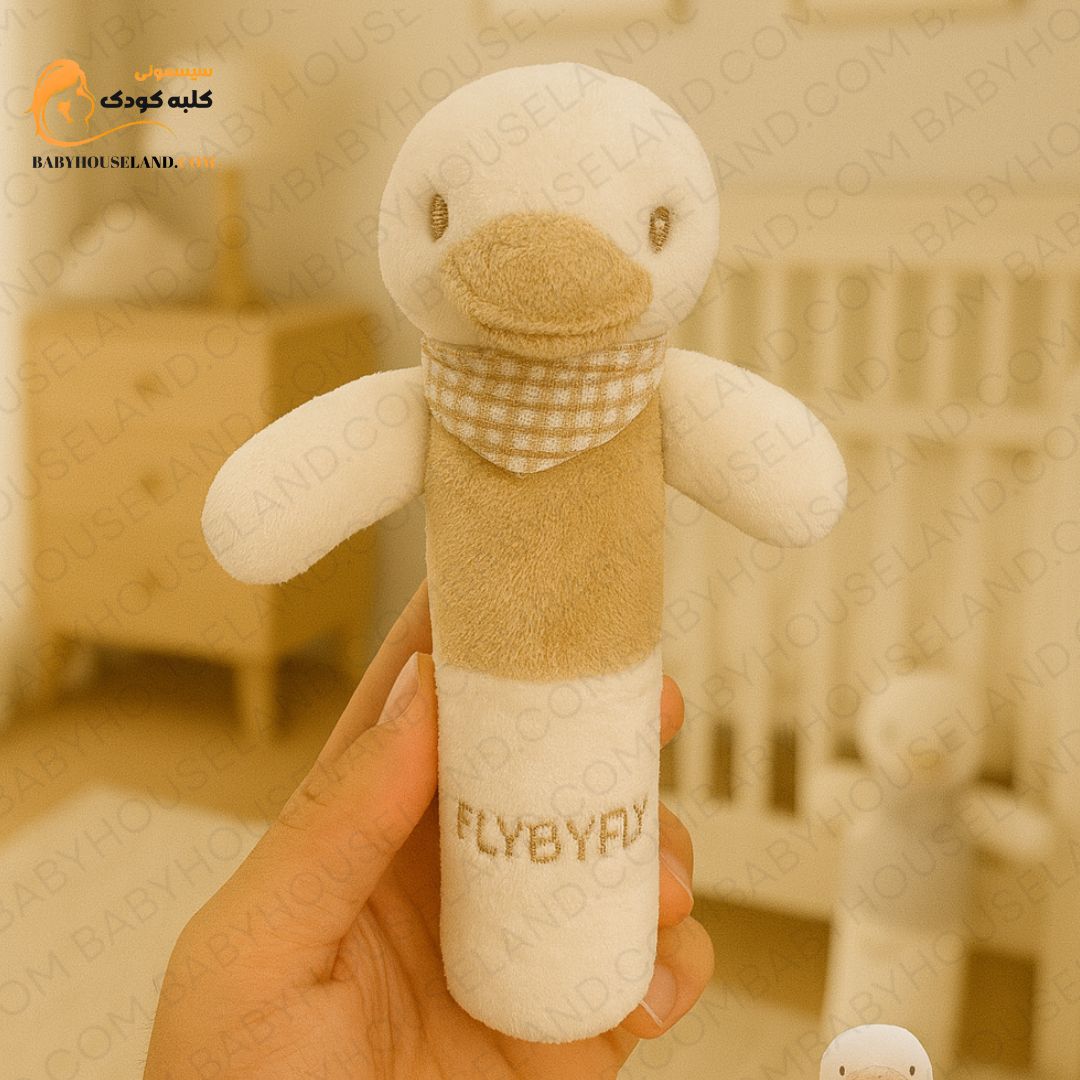 🦆🔔 جغجغه سوسیسی طرح اردک FLYBYFLY – صدایی نرم از دنیای کودکانه