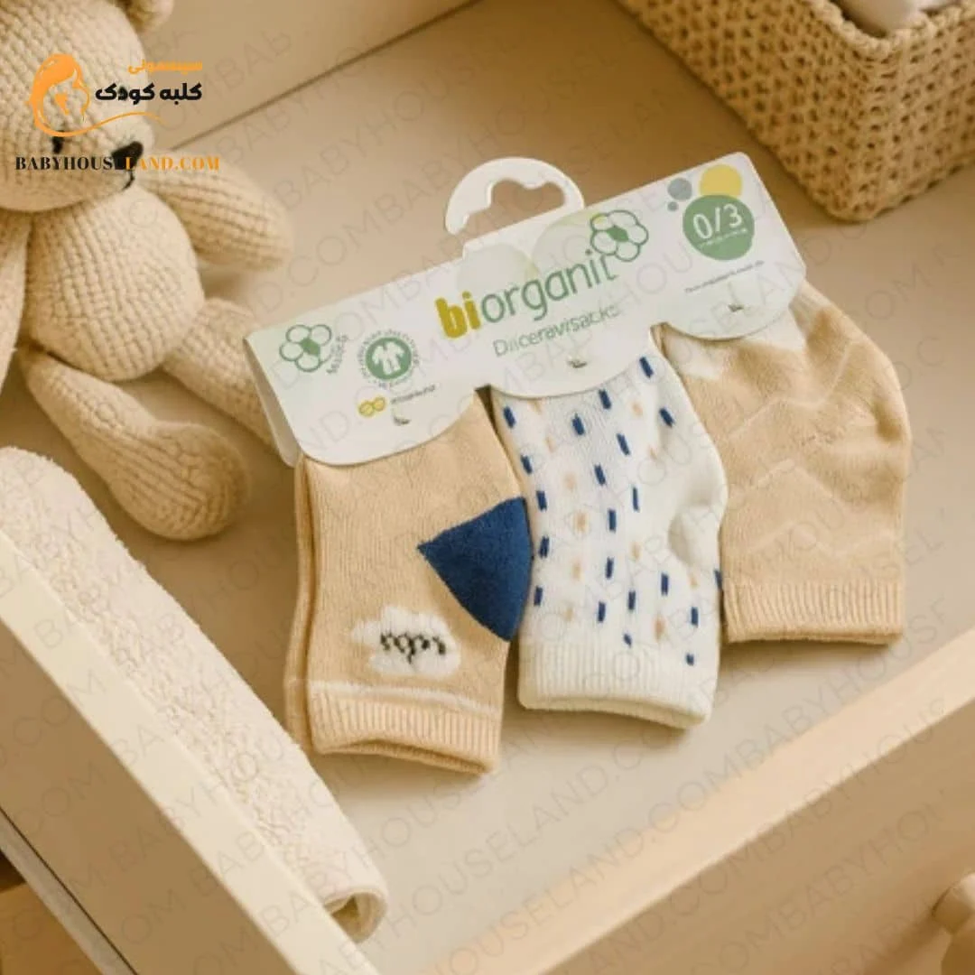 جوراب نوزادی ۳ تکه Biorganic کد 68448 – لطافت و کیفیت بی‌نظیر برای پاهای کوچولوی شما