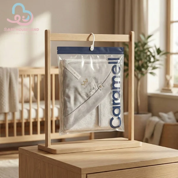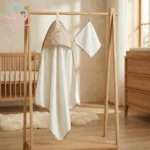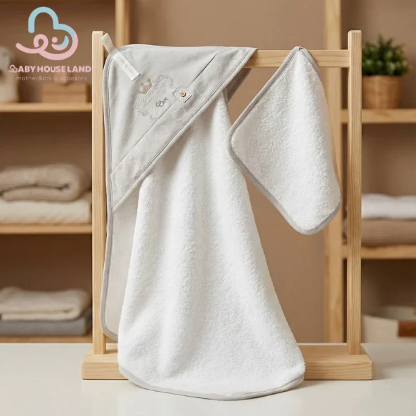 وجود کلاه روی حوله باعث میشود سر نوزاد بعد از حمام سریع گرم شود و از سرمای ناگهانی جلوگیری کند.