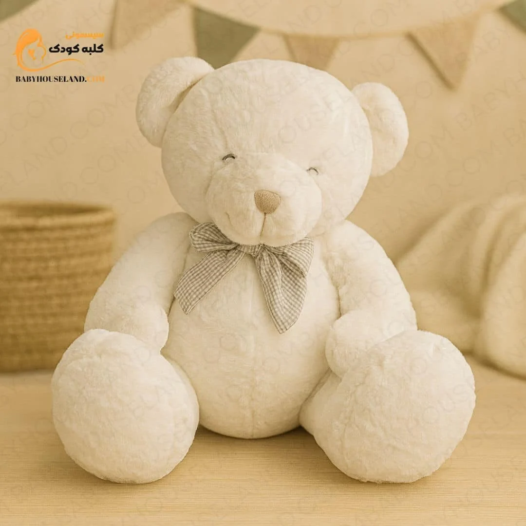 این خرس بامزه با قد ۵۰ سانتیمتر و طراحی نشسته، هم یک عروسک لطیف برای بازی و آغوش کودکانهست، هم یک دکور فانتزی زیبا برای اتاق کوچولوت!