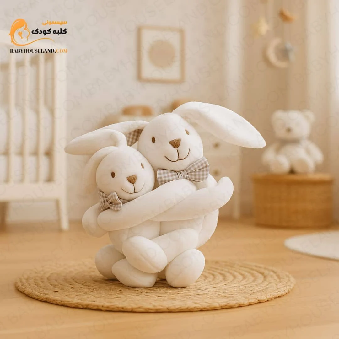 این جفت خرگوش بامزه با طراحی فانتزی و رنگهای ملایم، نهتنها دوستداشتنیترین همبازی برای نوزاد شما هستن، بلکه به دکور اتاق کودک هم حالوهوای خاصی میدن.