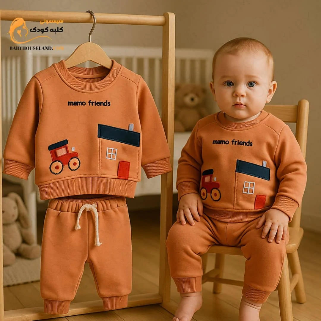 شامل دورس آستینبلند طرح تراکتور 🚜 و شلوار کشی نرم و راحت