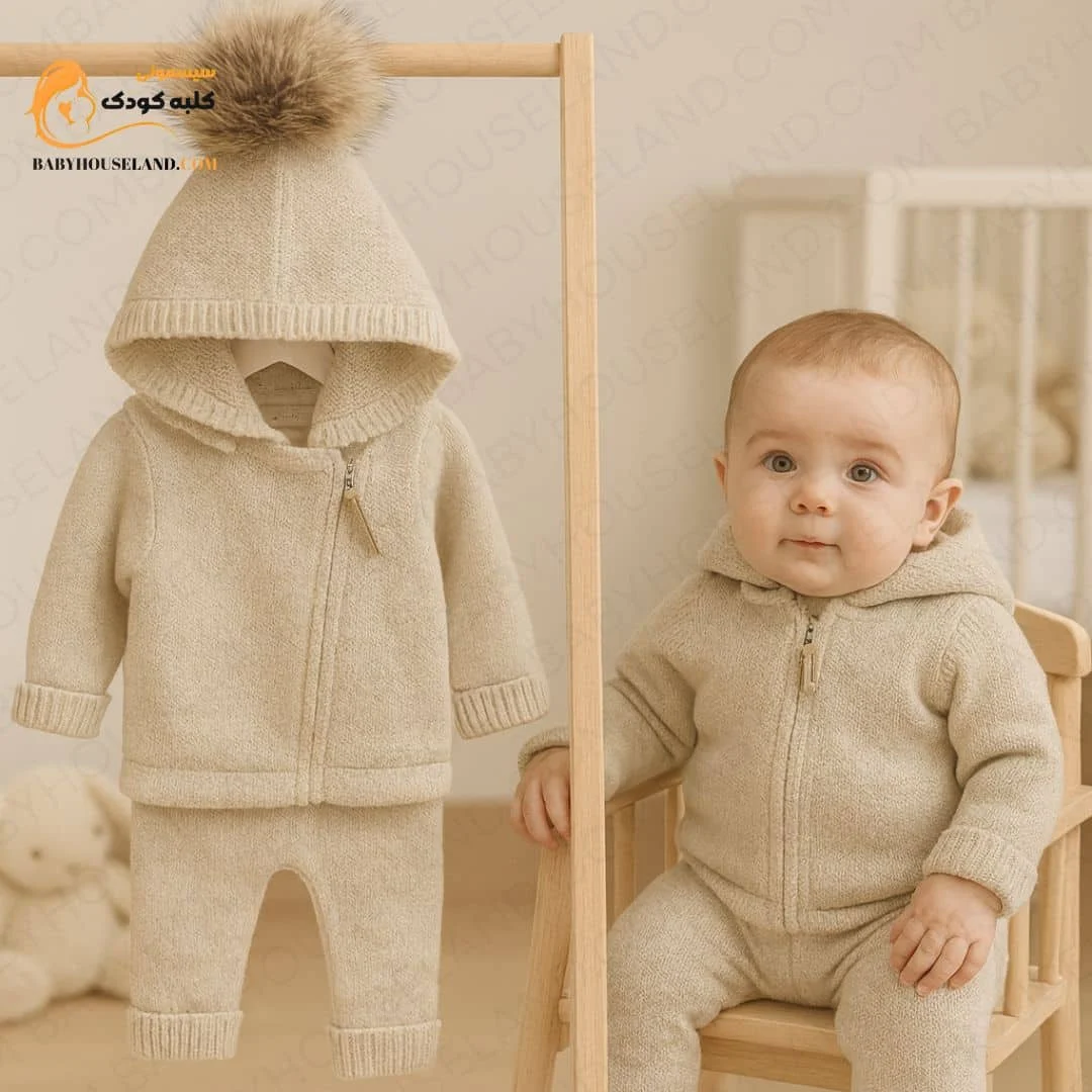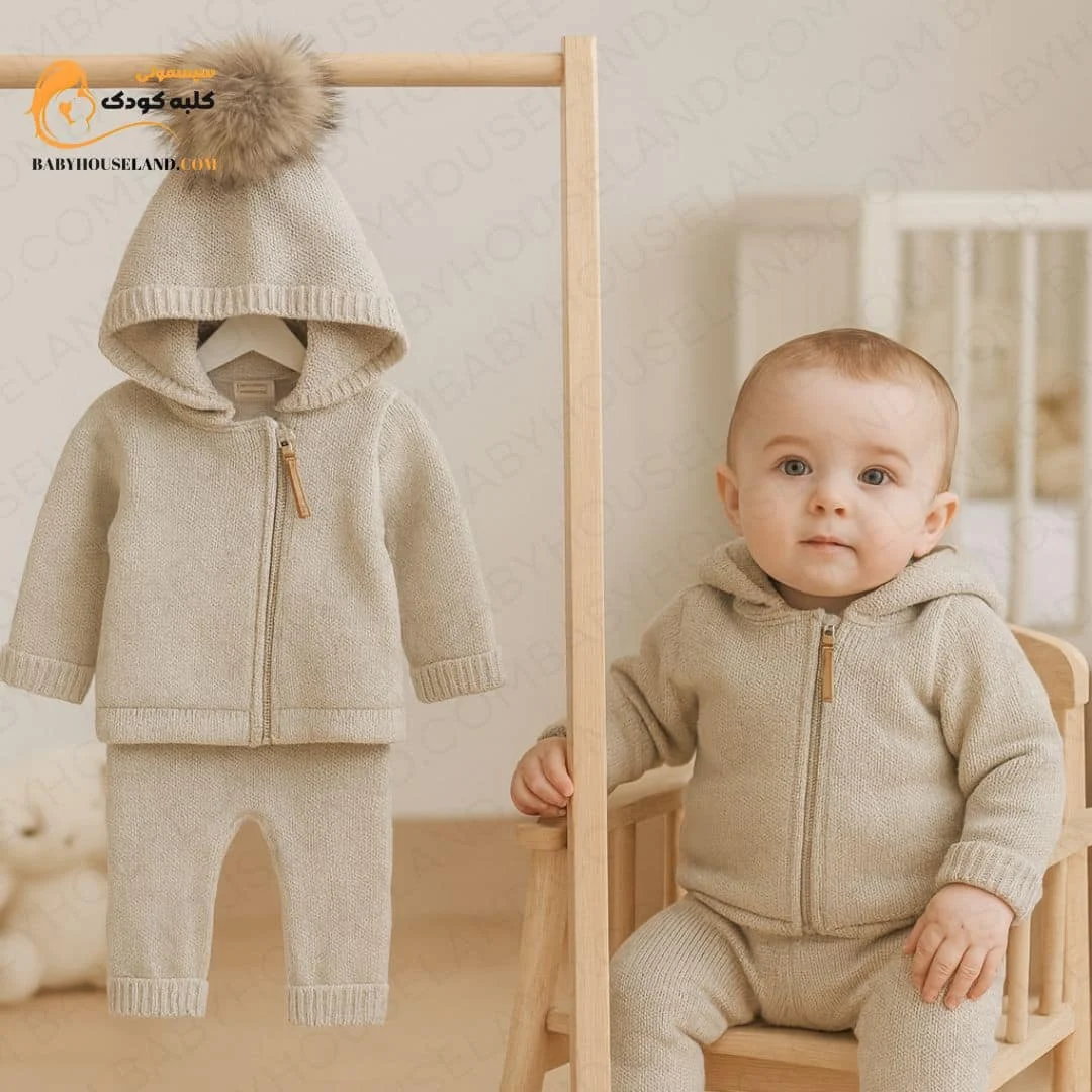 🎁 اگر به دنبال یک لباس گرم، شیک و بادوام برای نوزاد خود هستید، ست بافت ۲ تیکه NipperLand مدل 8349 بهترین انتخاب برای شماست.