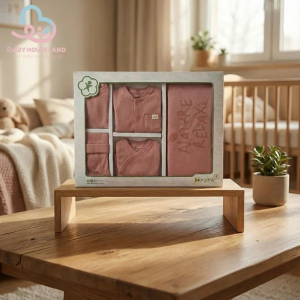 تمامی اجزاء این مجموعه از پارچه ۱۰۰٪ ارگانیک تولید شدهاند که دارای گواهی GOTS (استاندارد جهانی منسوجات ارگانیک) است. این گواهی تضمین میکند که در مراحل تولید هیچ ماده شیمیایی، رنگ مصنوعی یا افزودنی صنعتی استفاده نشده و لباسها کاملاً ایمن و سازگار با پوست حساس نوزاد هستند. بافت طبیعی و قابل تنفس پارچهها، از تعریق بیش از حد جلوگیری کرده و در تمام طول روز احساس نرمی و راحتی ایجاد میکند.
