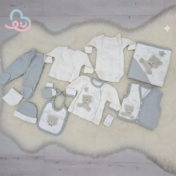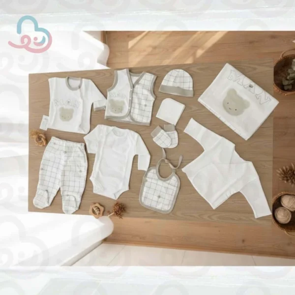 ست کامل بیمارستانی Tonton مدل ۱۷۶ با طرح خرس، انتخابی ایدهآل برای نوزادان از بدو تولد تا ۳ ماهگی است. این ست زیبا با طراحی خاص و کیفیت بالای پارچه، تمام وسایل مورد نیاز نوزاد را در روزهای اول زندگی در یک بستهبندی شیک و کاربردی فراهم میکند.