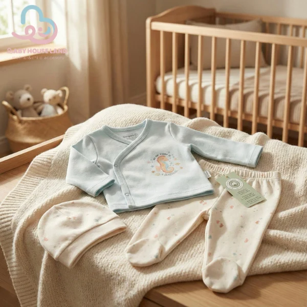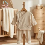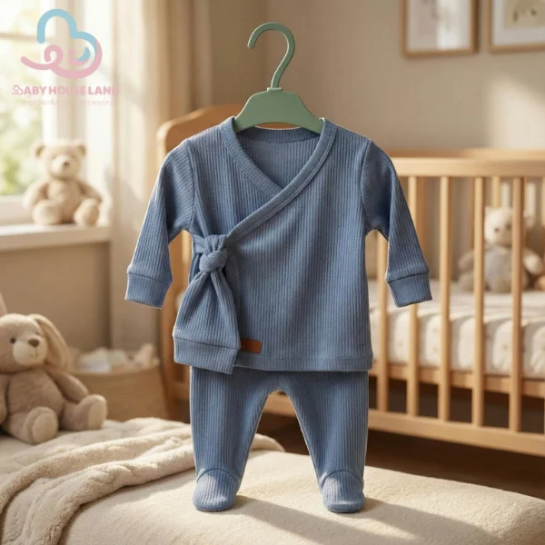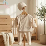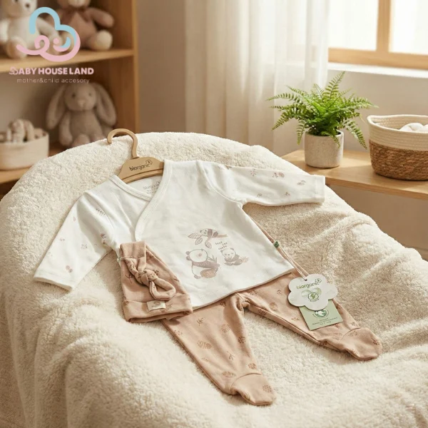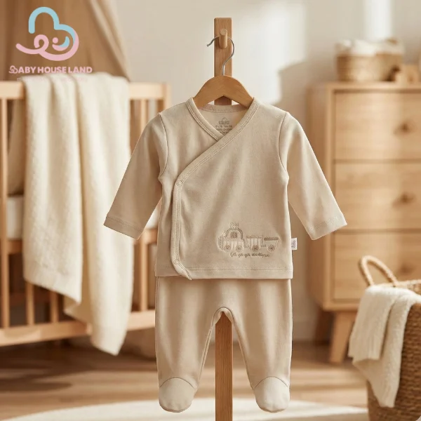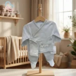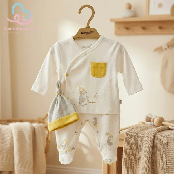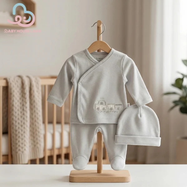 پیراهن با دکمههای کناری یا جلو، پوشاندن لباس را بسیار آسان میکند و کاملاً مطابق با راحتی نوزاد طراحی شده است. شلوار کمرکشی نرم دارد و بدون ایجاد فشار، بهراحتی قابل استفاده است. کلاه نیز همراه با ست، سر نوزاد را گرم نگه میدارد و ظاهر لباس را تکمیل میکند.