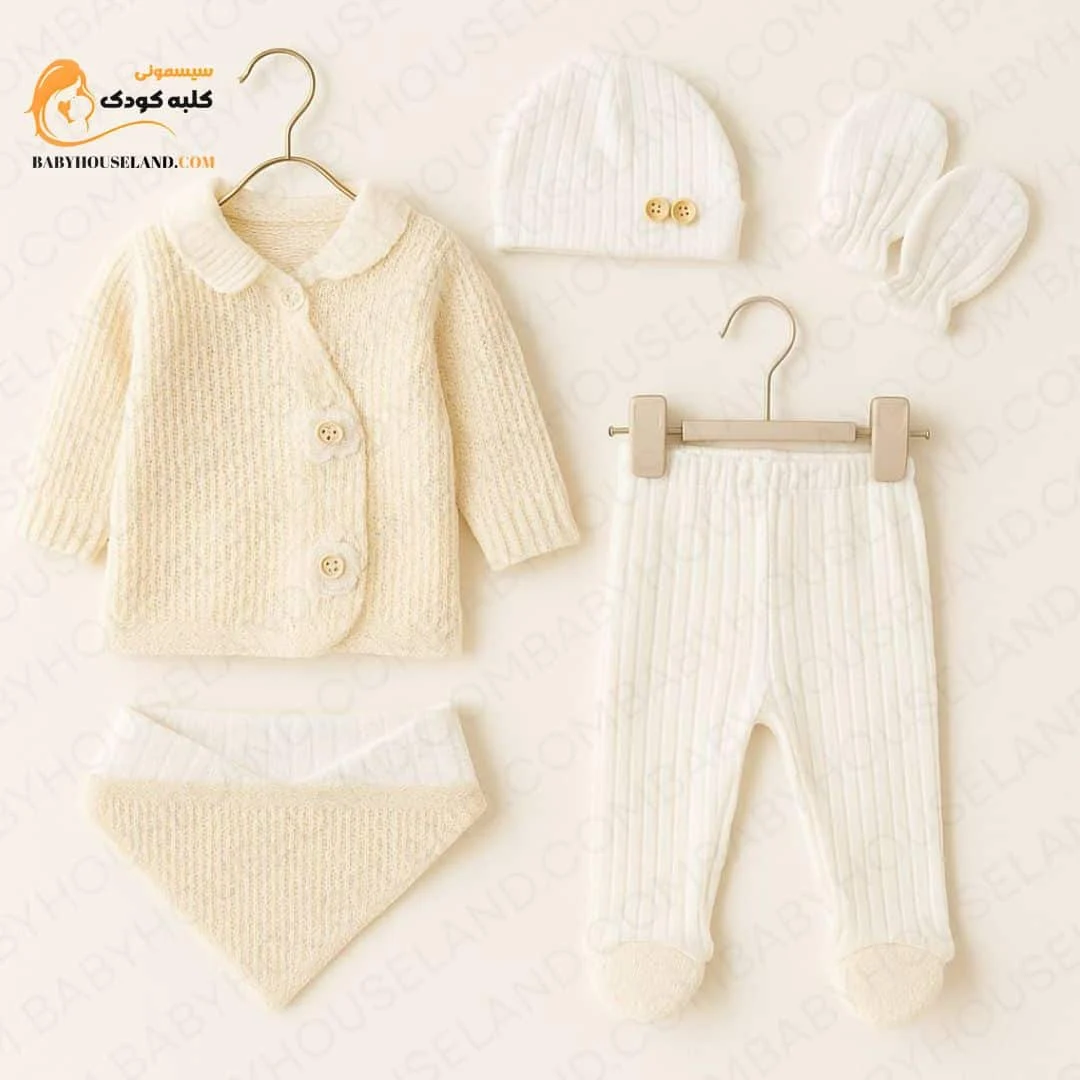 ست کامل ۵ تیکه (کلاه + پیشبند + دستکش + شلوار + لباس)