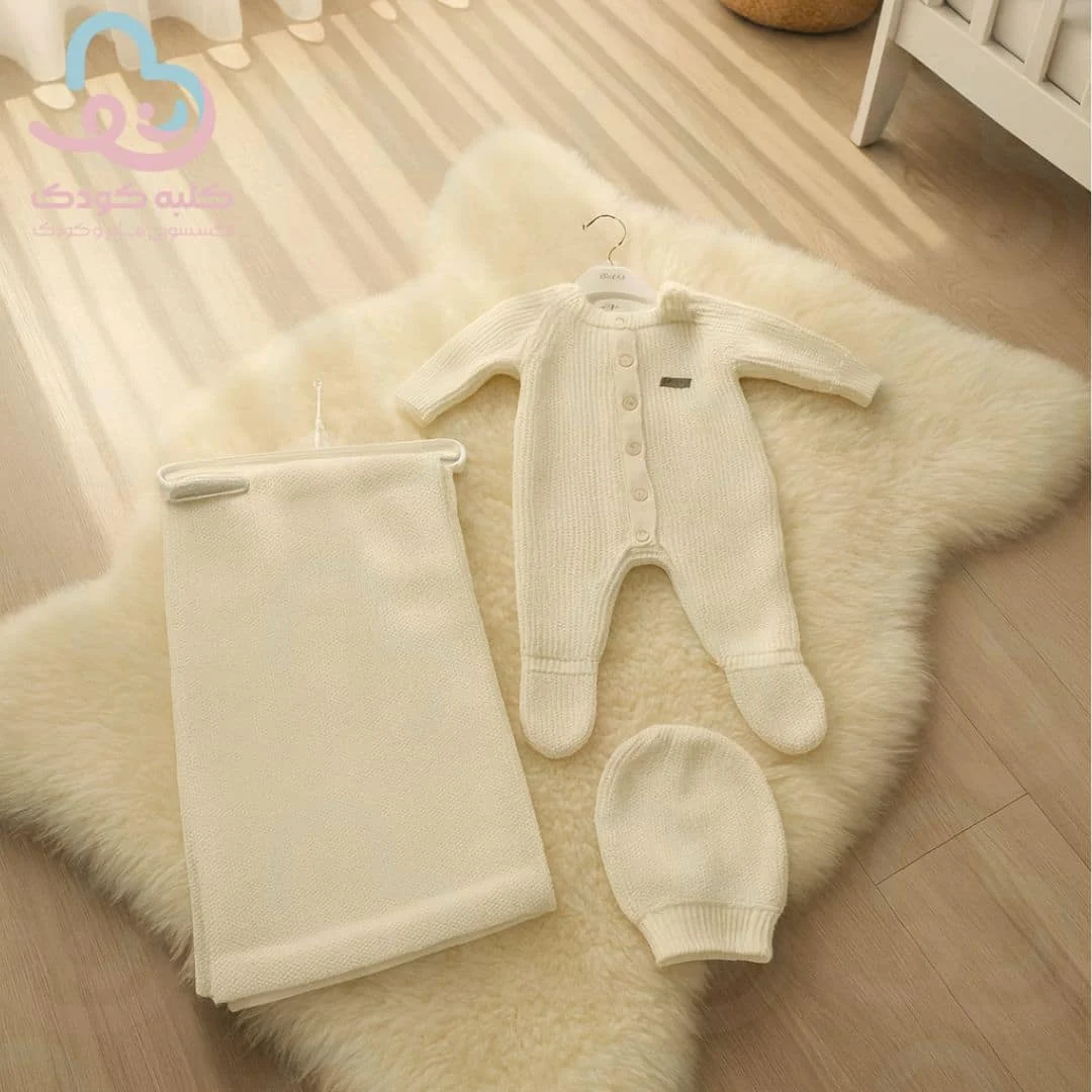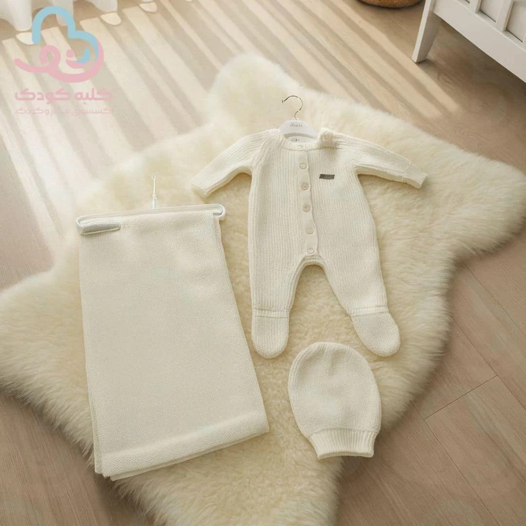 🧶 ست ۳ تیکه بافت نوزادی BabyMia مدل 4063