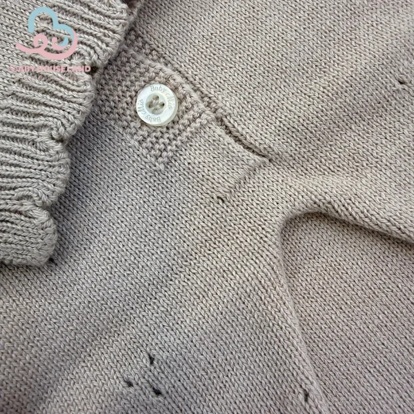 این سرهمی بافت بهگونهای طراحی شده که در عین لطافت، پوشش کامل و گرمای کافی را برای نوزاد فراهم کند. بافت استاندارد، یقه نرم و دکمهبندی راحت، تعویض پوشک و لباس را برای مادر بسیار آسان میکند. الیاف نخریس طبیعی و کاملاً ضدحساسیت هستند تا پوست لطیف و حساس نوزاد دچار قرمزی یا حساسیت نشود.