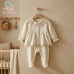 این ست به دلیل طراحی ظریف و رنگبندی آرام، انتخابی عالی برای موقعیتهای خاص و عکسهای نوزادی نیز هست. پارچه باکیفیت و دوخت بادوام آن باعث میشود لباس پس از شستشوی مکرر، شکل اولیه و لطافت خود را حفظ کند.