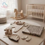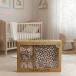 سرویس ۵ تکه دخترانه NipperLand مدل 8222 با طرح پلنگی شیک و مدرن، انتخابی خاص برای والدینی است که به دنبال ظاهری لاکچری و متفاوت برای نوزاد خود هستند.
