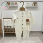 این ست شامل سرهمی راحت و کلاه ست است که استایل کودک را تکمیل میکند و در عین حال از سر نوزاد در برابر سرما محافظت مینماید. سرهمی بهگونهای طراحی شده که امکان حرکت آزاد، خواب راحت و پوشیدن آسان را برای نوزاد فراهم کند. دکمههای کاربردی روی لباس باعث میشود تعویض پوشک و لباس بسیار سریع و ساده انجام شود.
