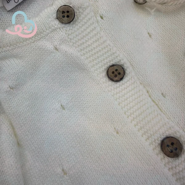 سرهمی مدل ۴۰۵۶ دارای دکمههایی است که فرآیند پوشاندن لباس یا تعویض پوشک را برای والدین بسیار آسان میکند. دکمهها با فاصله مناسب و کیفیت بالا انتخاب شدهاند تا در استفاده طولانیمدت دچار شل شدن یا خراب شدن نشوند.