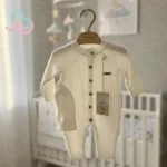 تمام قسمتهای لباس با دقت دوخته شده و کاملاً مناسب تحرک طبیعی نوزاد طراحی شده است. نه تنگی آزاردهنده دارد و نه گشادی اضافی که ظاهر لباس را خراب کند. این مدل برای خواب، بازی و استفاده طولانیمدت کاملاً ایدهآل است.