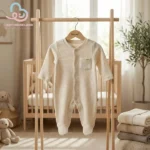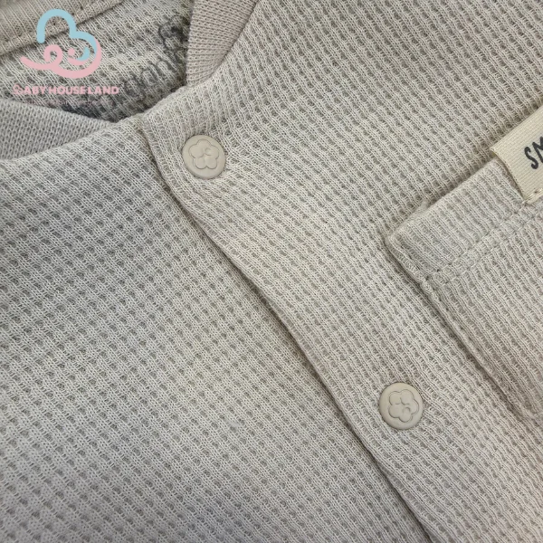پارچه به کار رفته در سرهمی 60743 دارای بافتی لطیف و کشسان است که با حرکات بدن نوزاد هماهنگ میشود و آزادی عمل کامل را فراهم میکند. این مدل به صورت تمامقد طراحی شده و با دکمههای فشاری در قسمت جلو و پاها بسته میشود تا پوشاندن و تعویض پوشک بهراحتی انجام گیرد. دوخت دقیق و منظم در بخشهای حساس مانند یقه، مچها و بین پاها از ایجاد حساسیت جلوگیری کرده و دوام لباس را بالا میبرد.