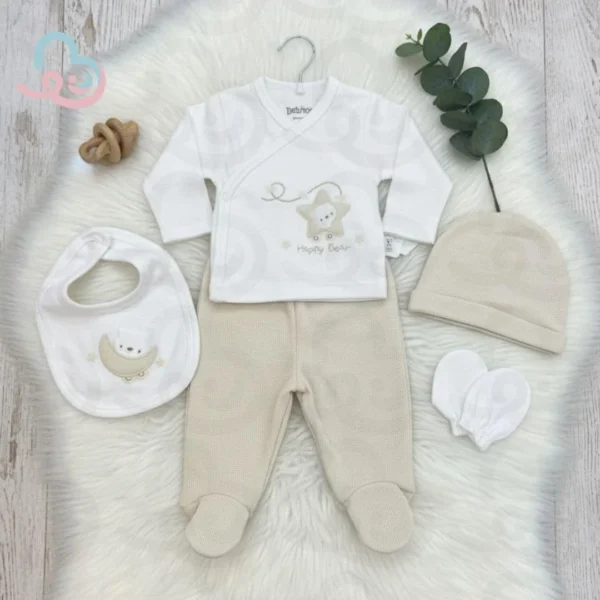 این ترکیب کاربردی، پوشش کامل و هماهنگی را برای نوزاد تازهمتولدشده فراهم میکند تا در هر شرایطی گرم، راحت و محافظتشده باشد.