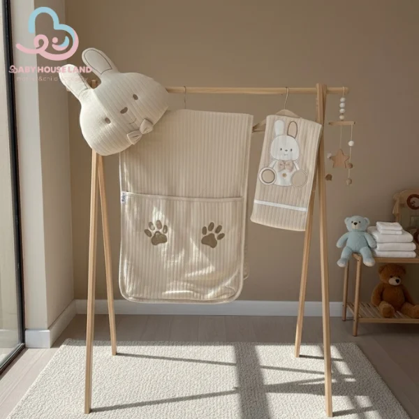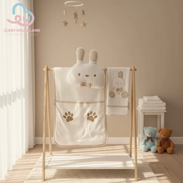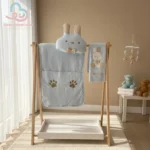 این محصول با دقت و توجه بالا نسبت به پوست حساس نوزاد تولید شده و تمامی اجزا کاملاً نرم، بدون حساسیت و قابل استفاده در تمام فصول سال هستند. طرح خرگوش روی پارچه، ظاهر محصول را دوستداشتنیتر کرده و برای اتاق خواب نوزاد جلوهای زیبا و کودکانه به وجود میآورد.