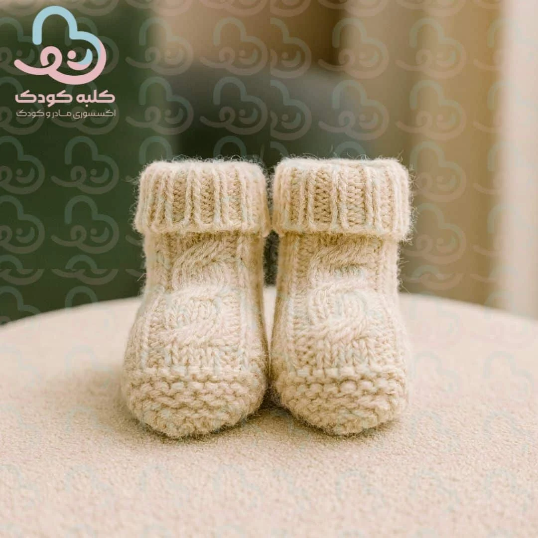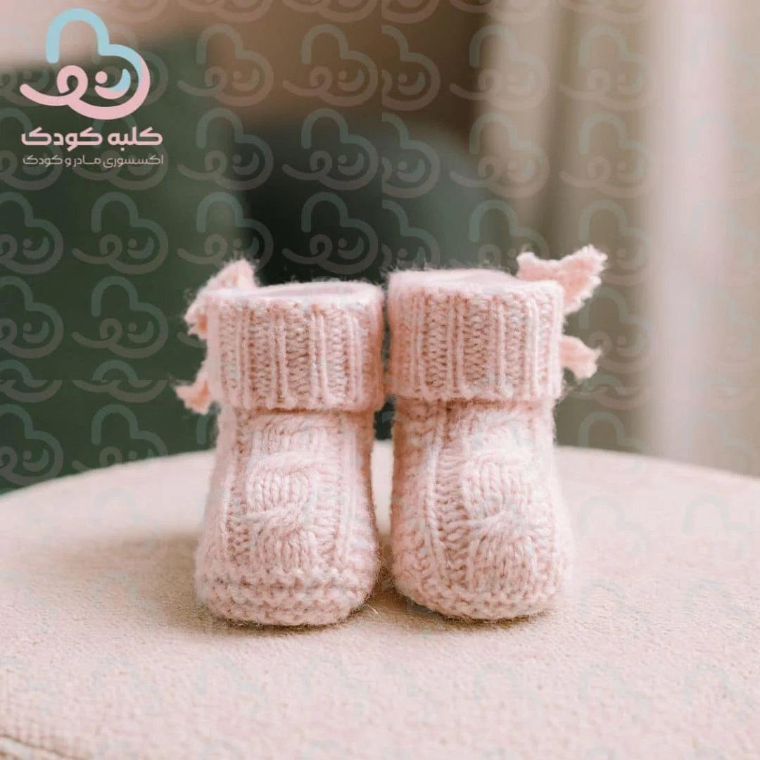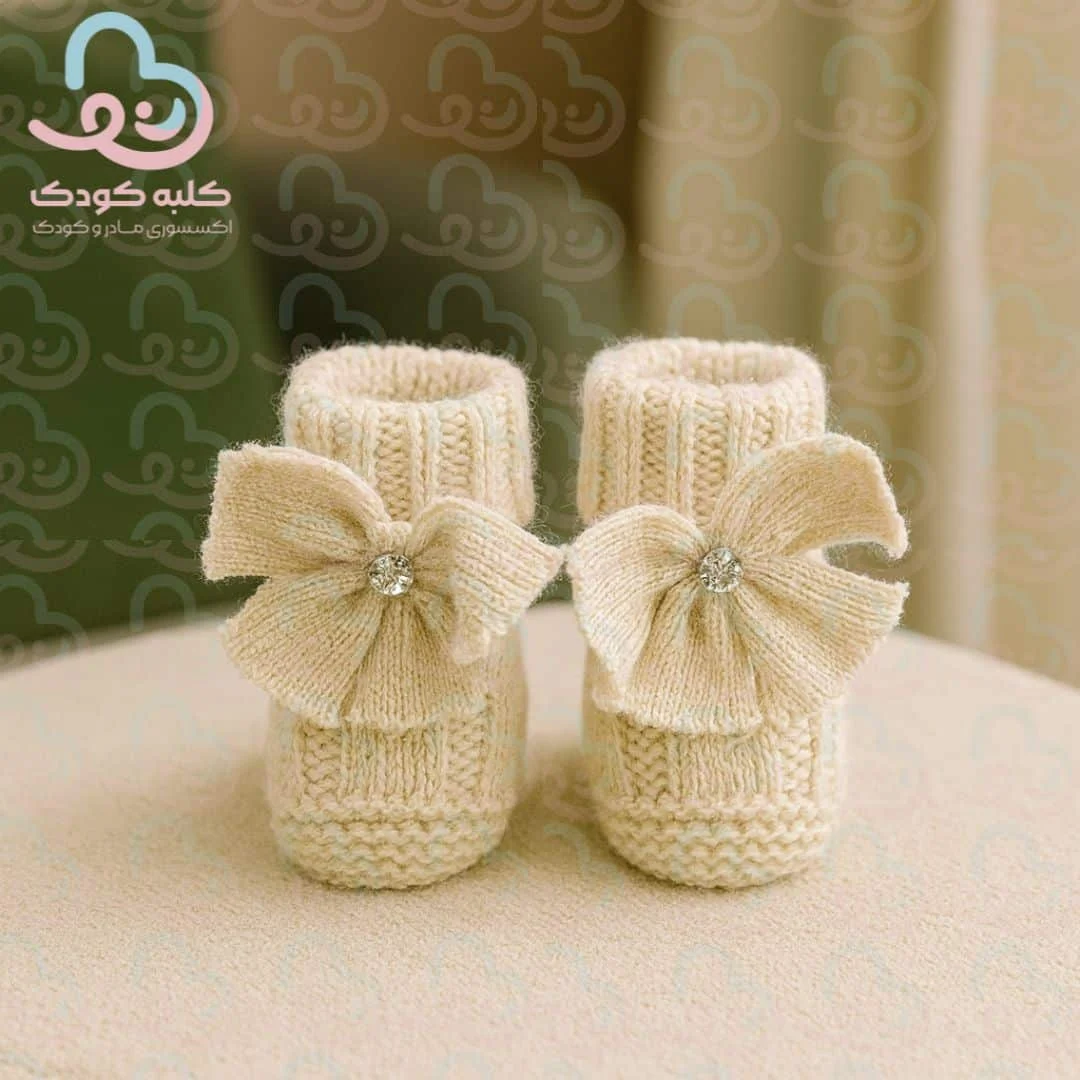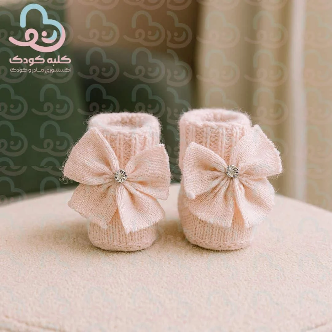 پاپوش بافت نوزادی با طراحی پاپیون پشت 🎀
