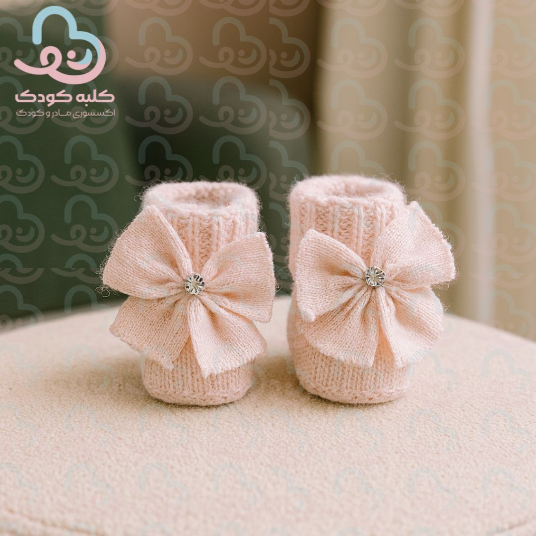پاپوش بافت نوزادی پشت پاپیون BabyMia مدل 9009 🧶👶🎀