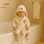 حوله کلاهدار برای خشککردن بهتر سر و بدن کودک 🛁