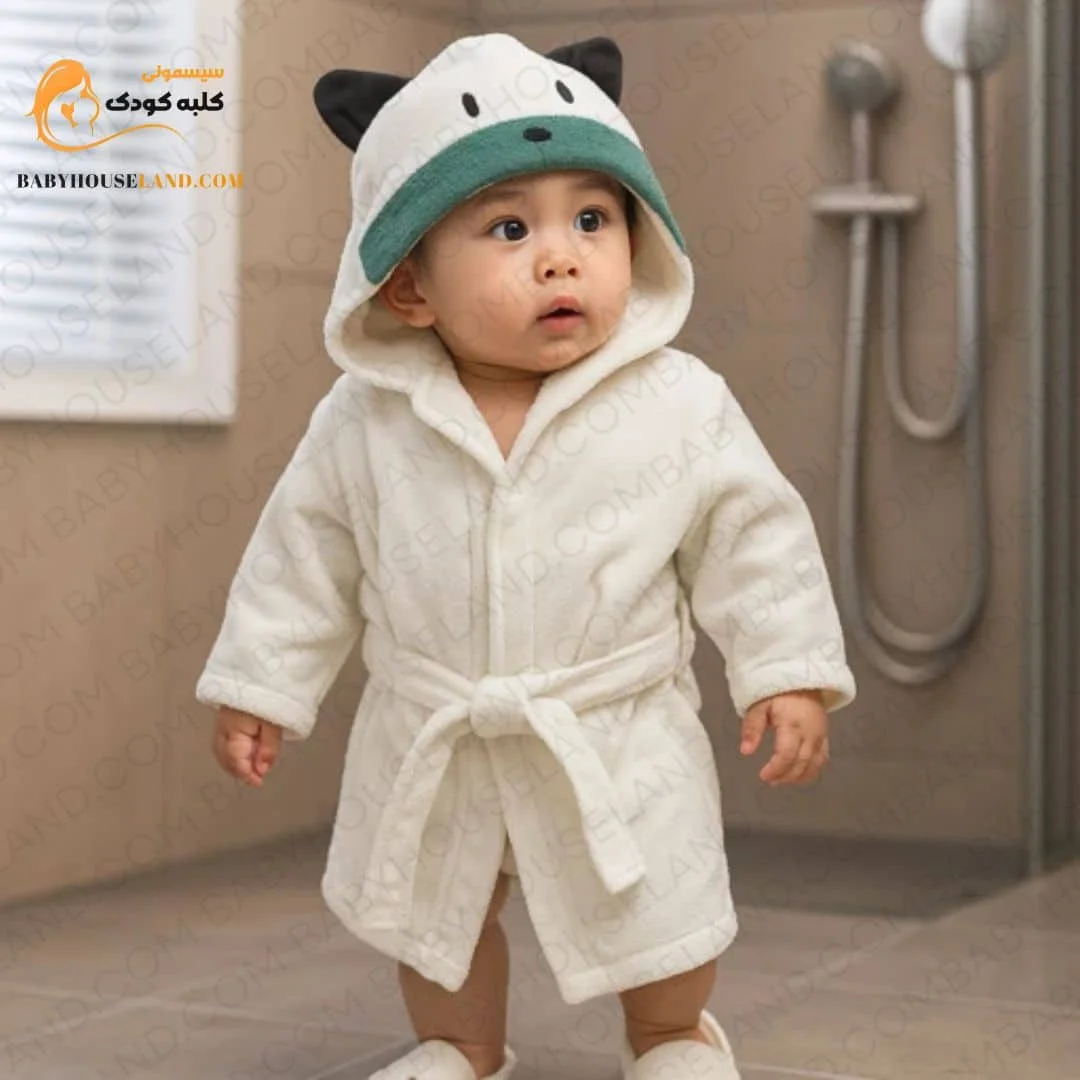 حوله کلاهدار برای خشککردن بهتر مو و بدن نوزاد 🛁