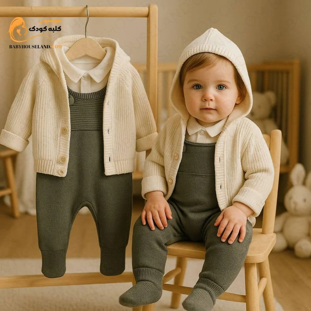 پیراهن بافت ۳ تیکه NipperLand 8355 👶🧶❄️