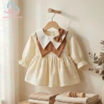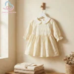 این پیراهن با طراحی ظریف و پارچه نخی سبک، مناسب فصلهای گرم سال بوده و راحتی کامل را برای کودک فراهم میکند.