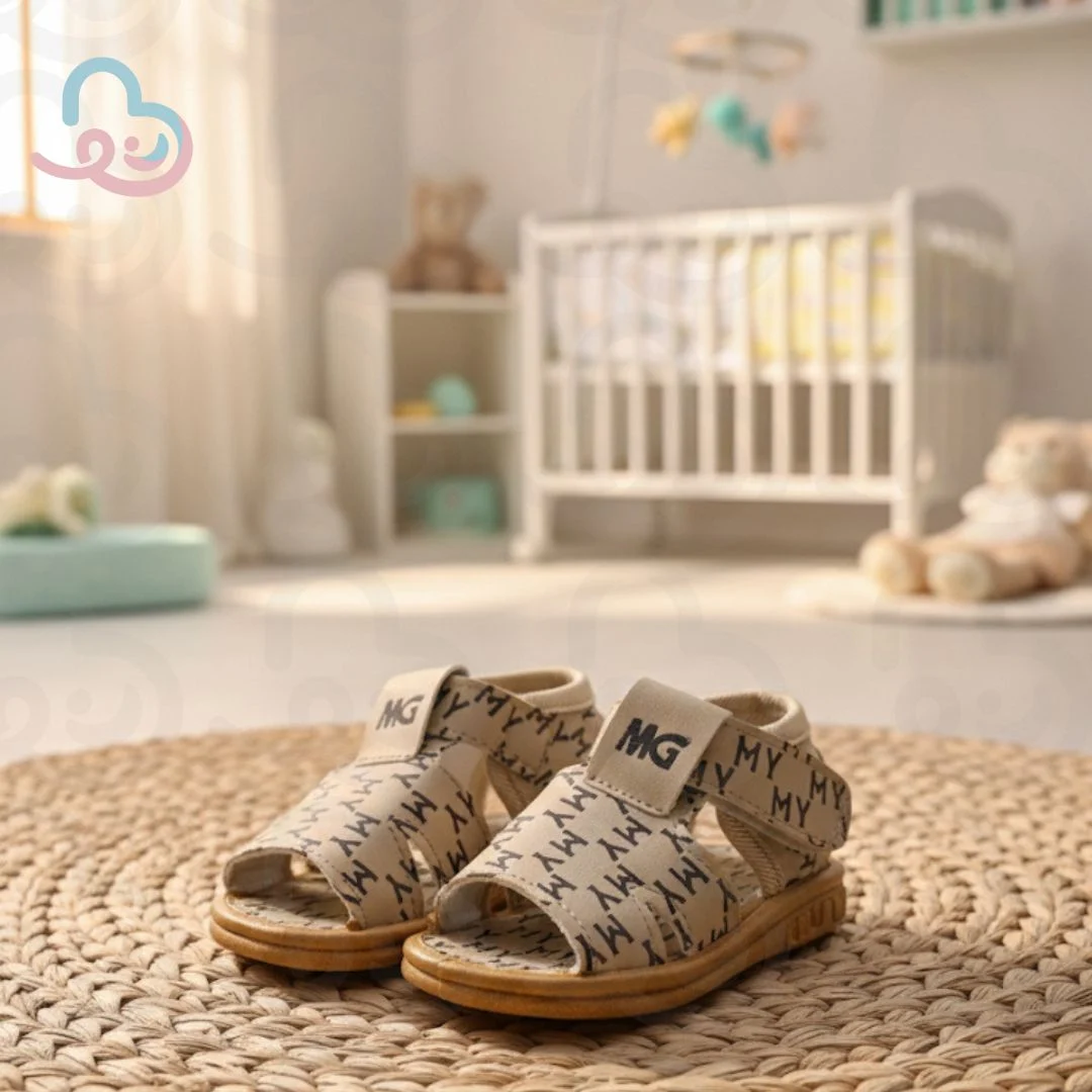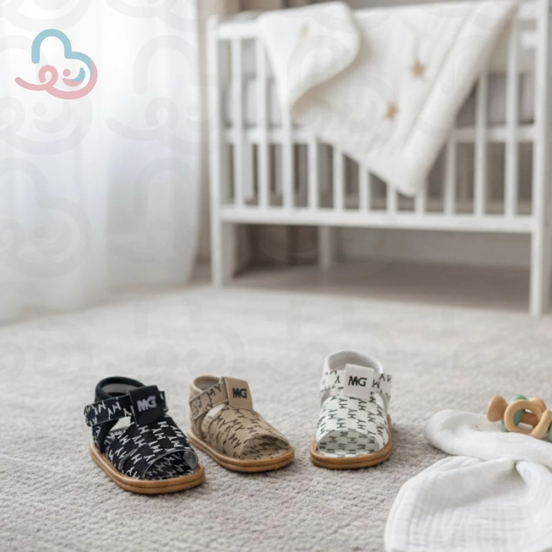 کفش بچگانه جلو باز مدل A04 با بند چسبی محکم طراحی شده تا پوشیدن و درآوردنش برای کودک آسان باشد.