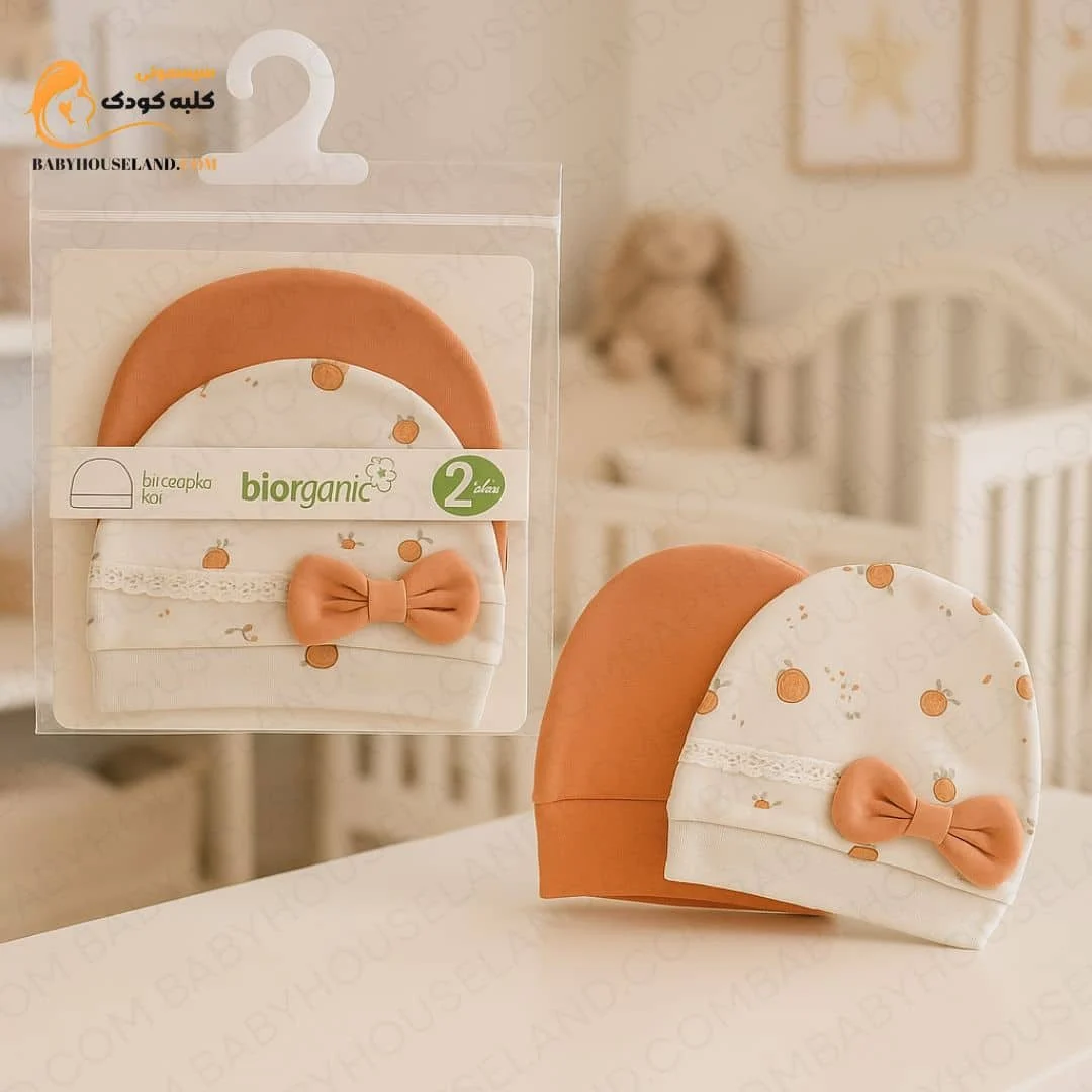 🧢 کلاه نوزادی ۲ تکه Biorganic مدل 72201 | نرمی و محافظت از بدو تولد